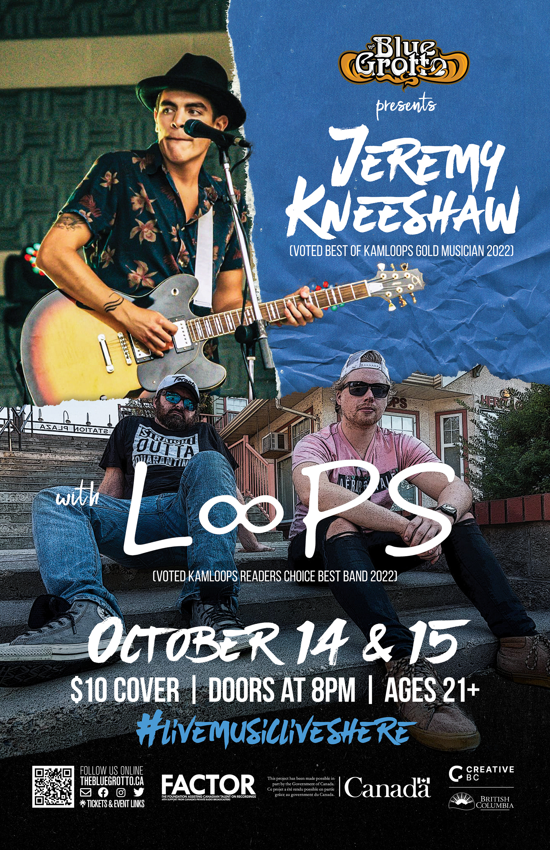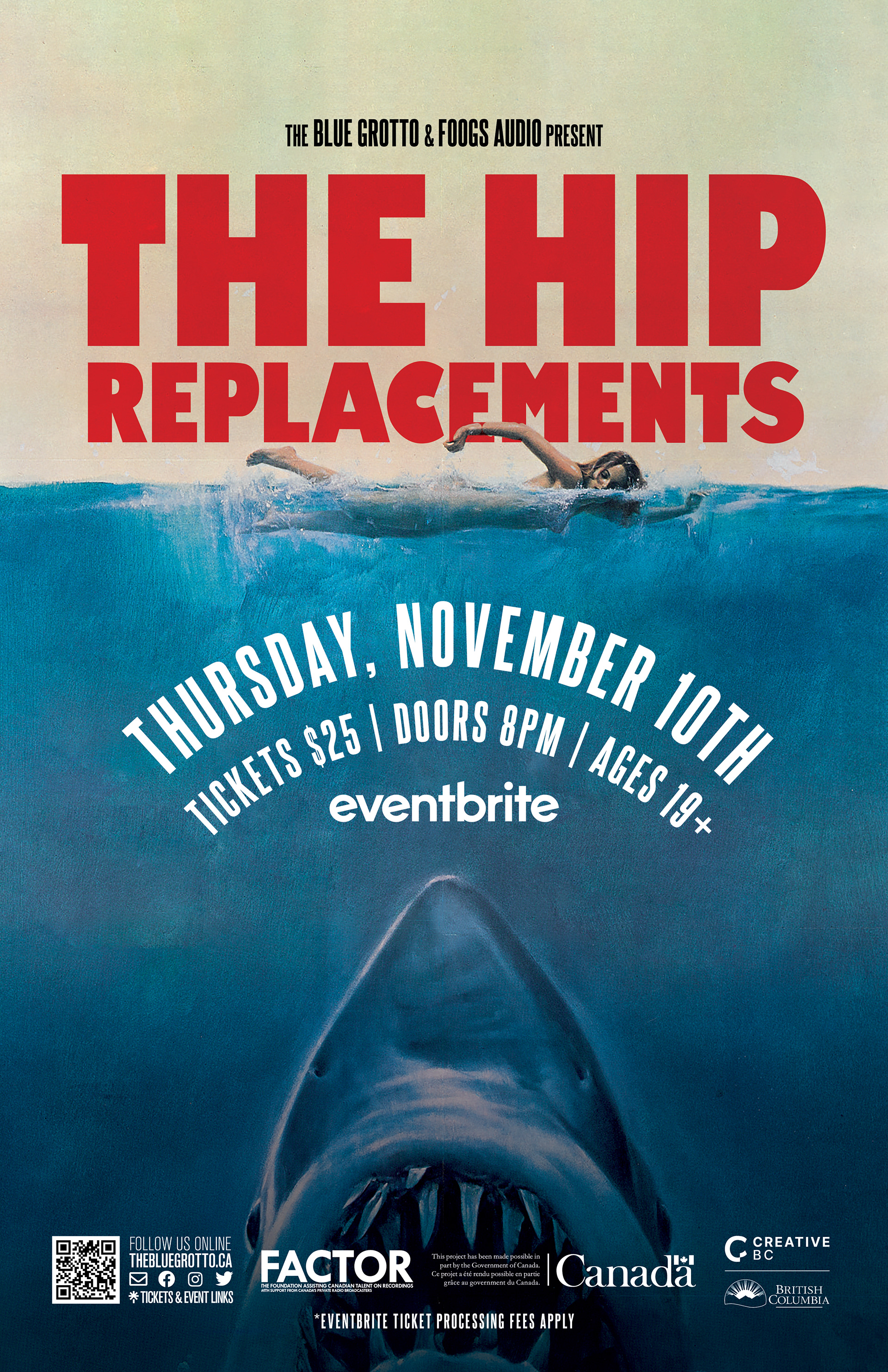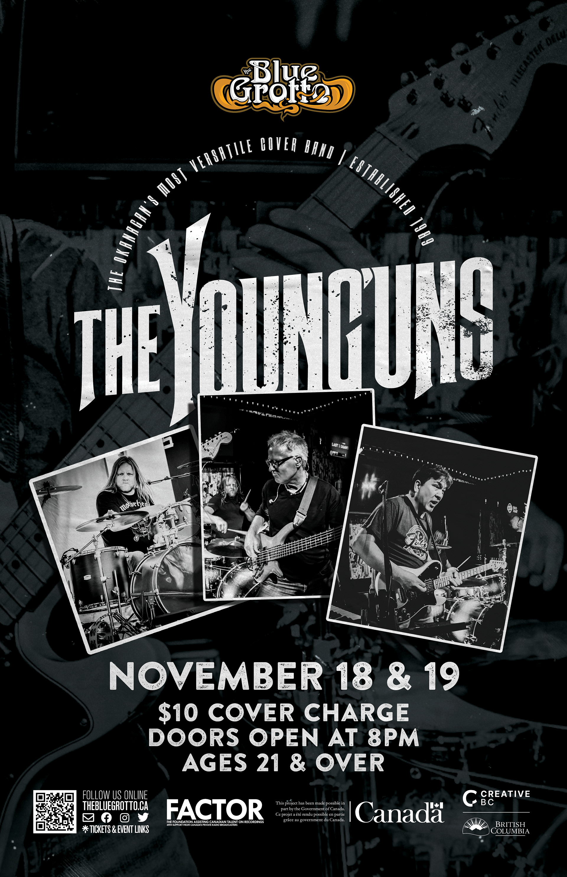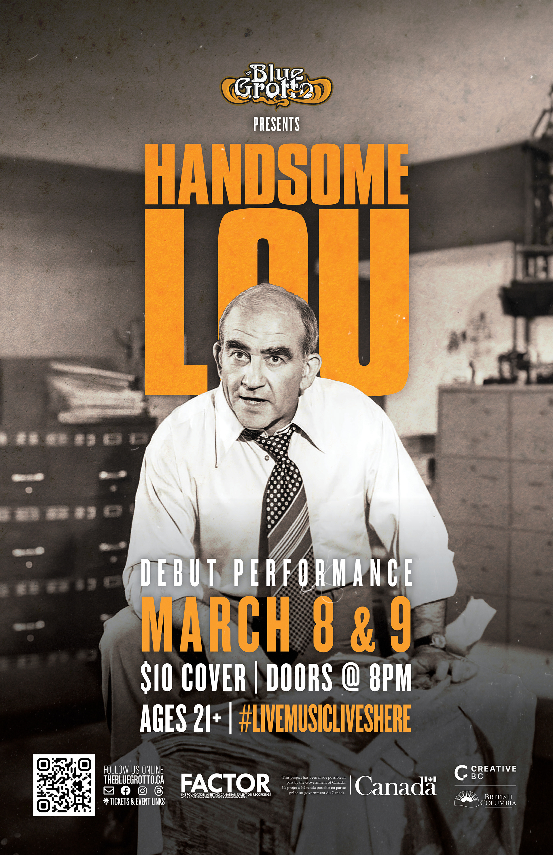 Various poster designs for Kamloops' home of live music, The Blue Grotto.