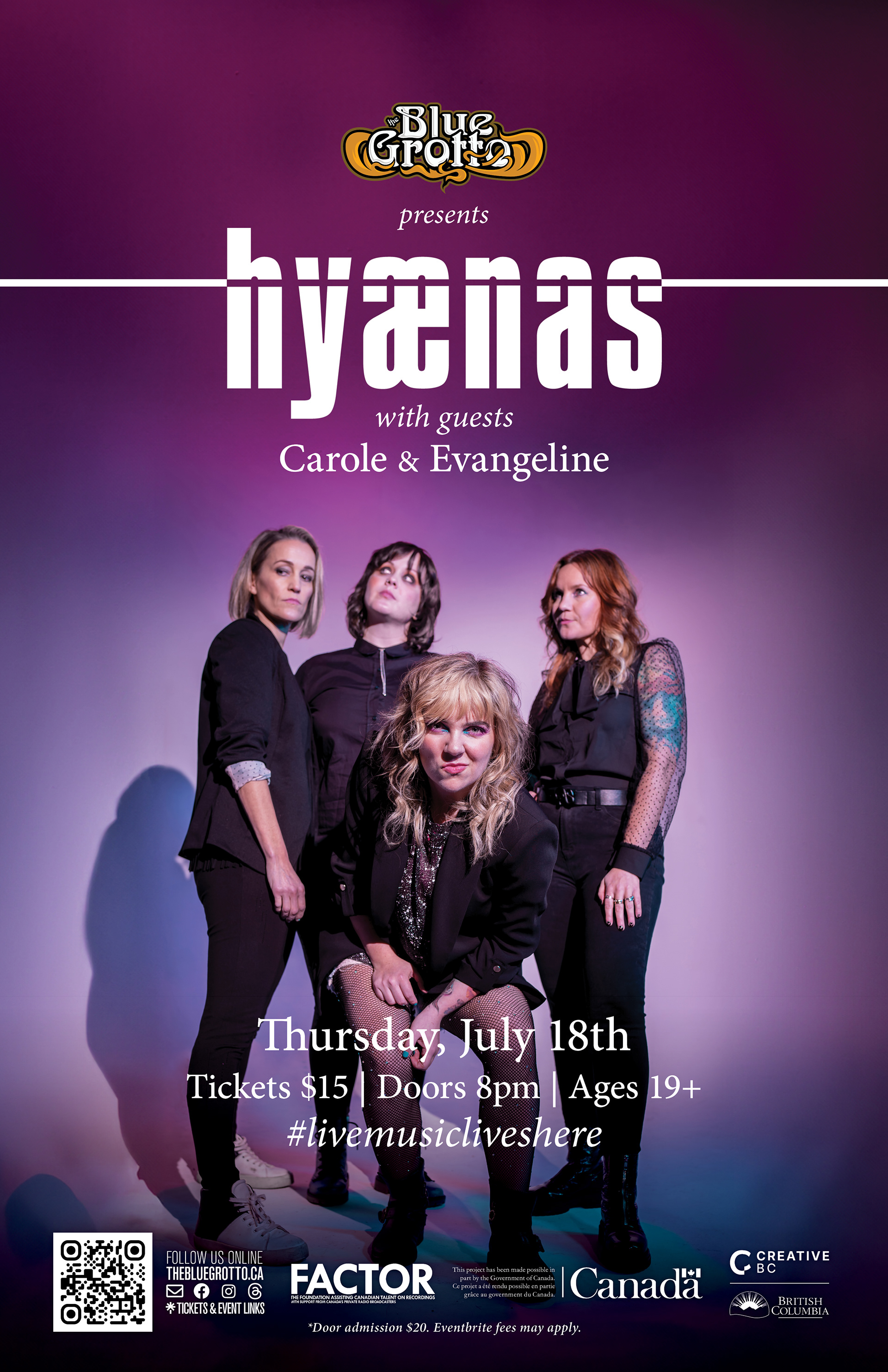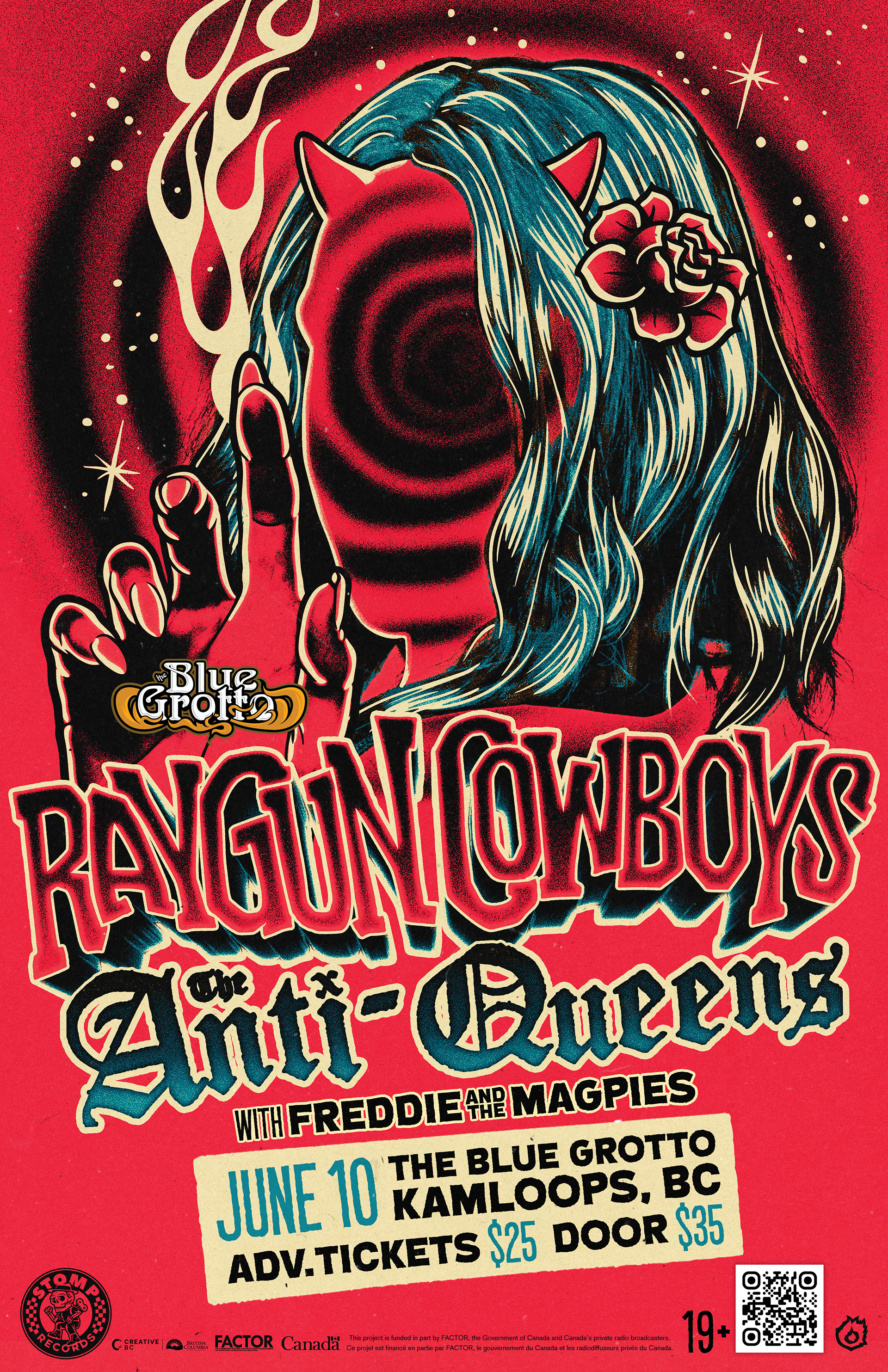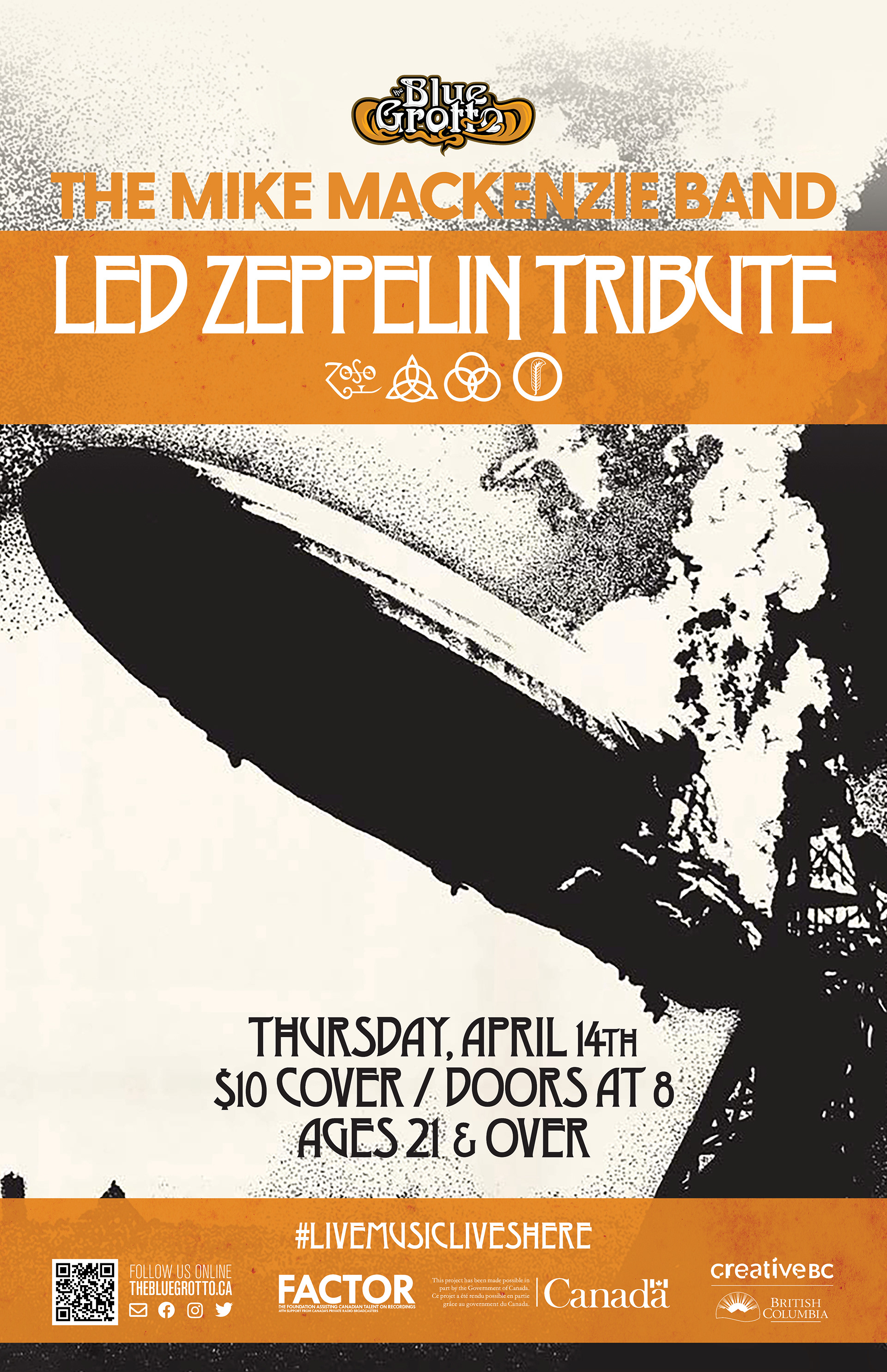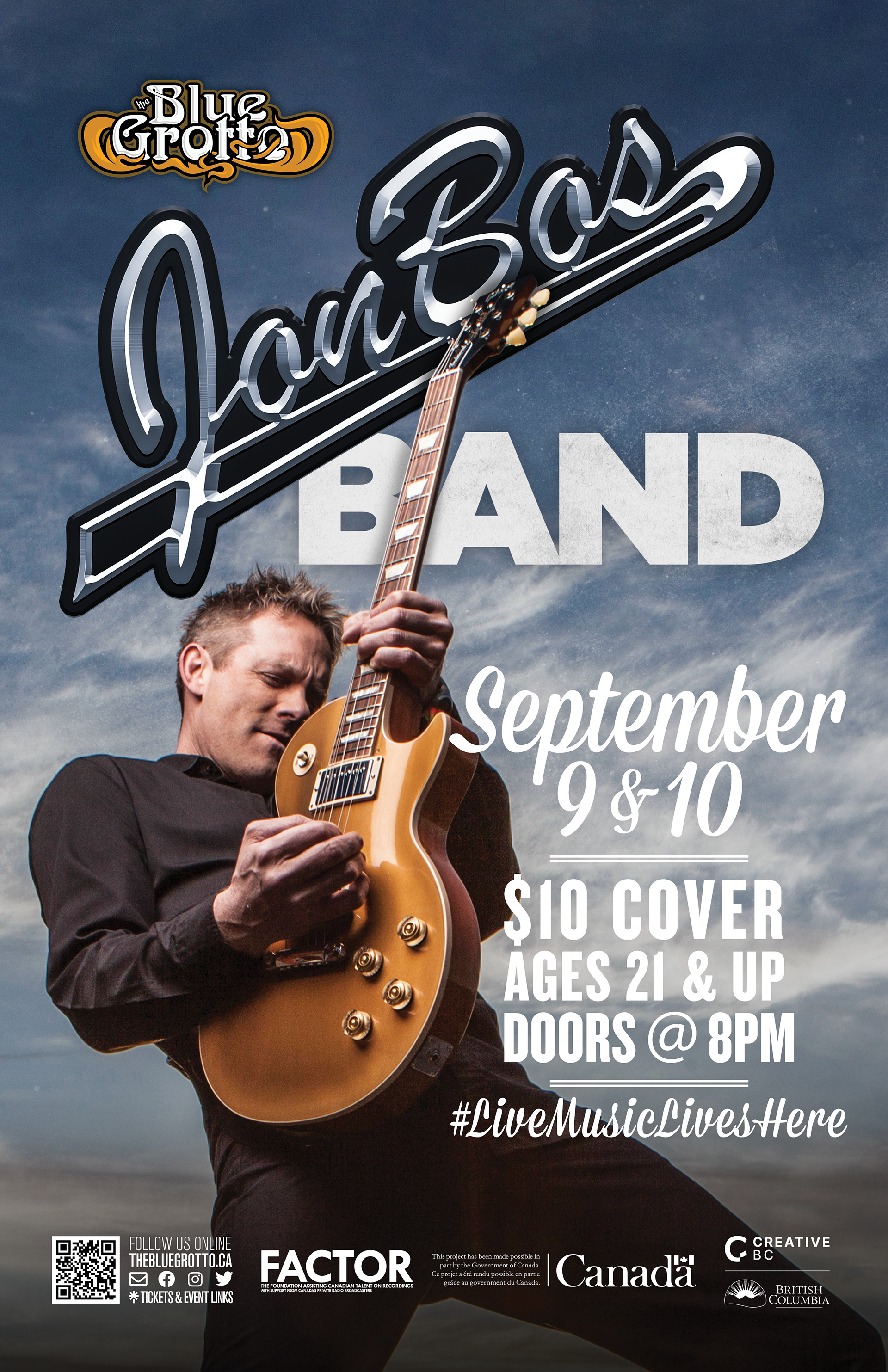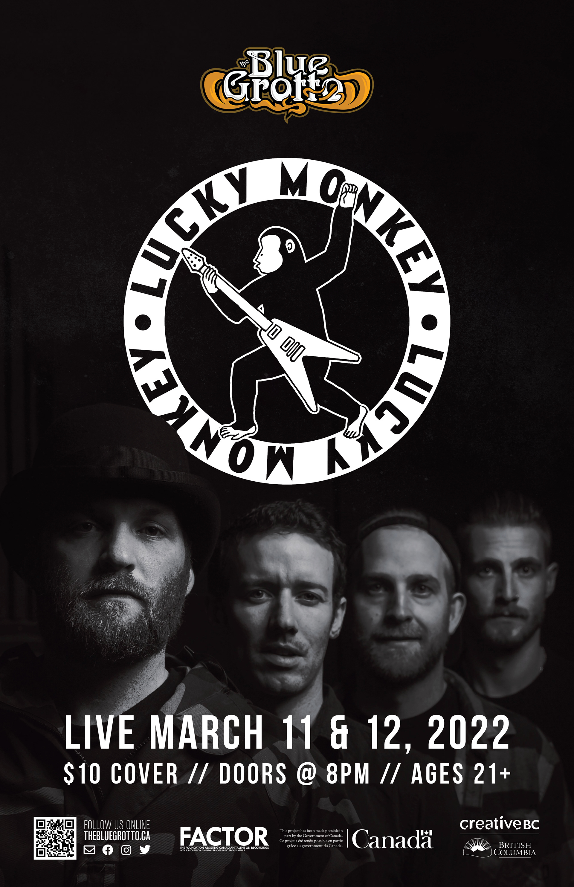 Various poster designs for Kamloops' home of live music, The Blue Grotto.