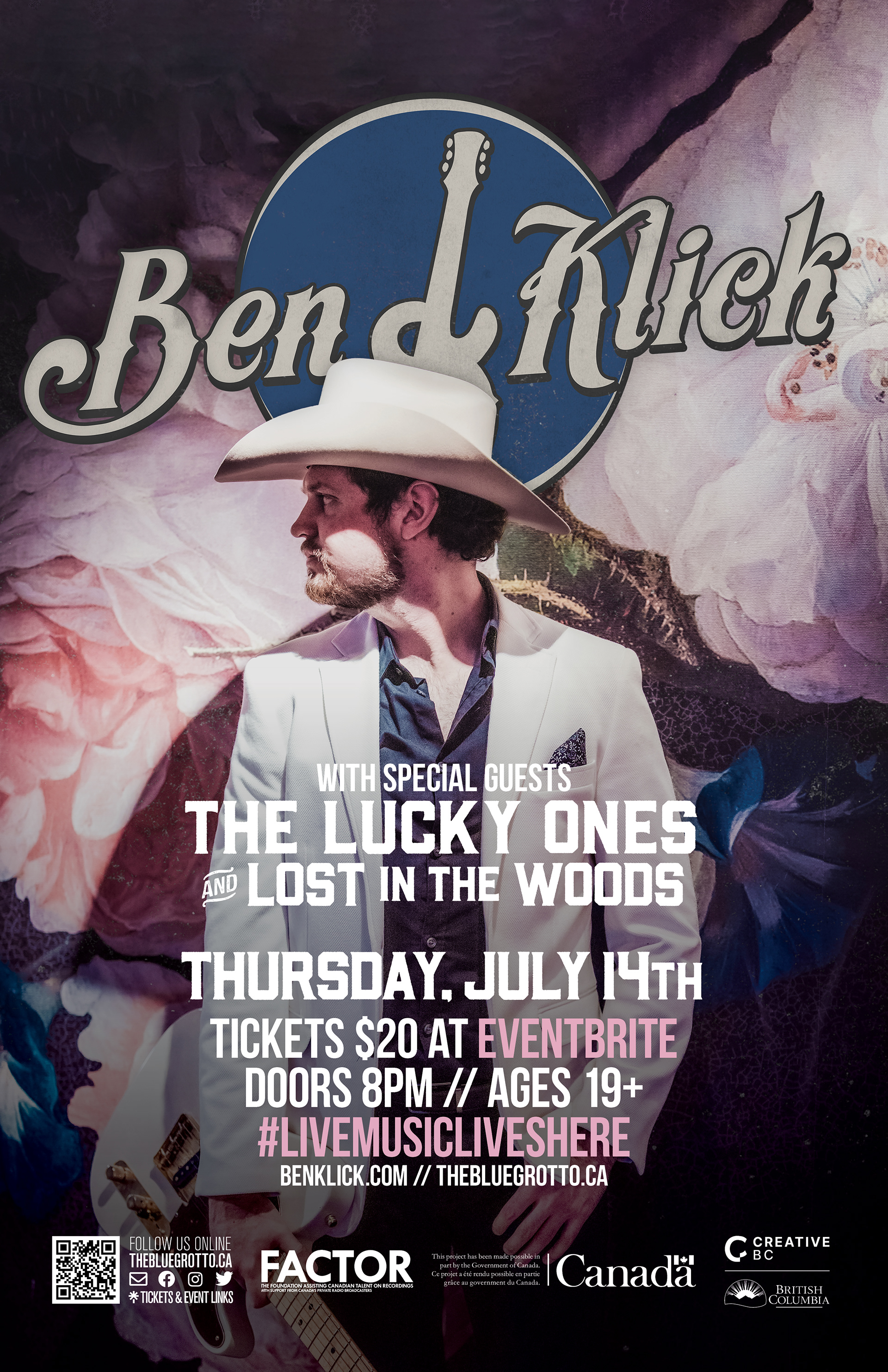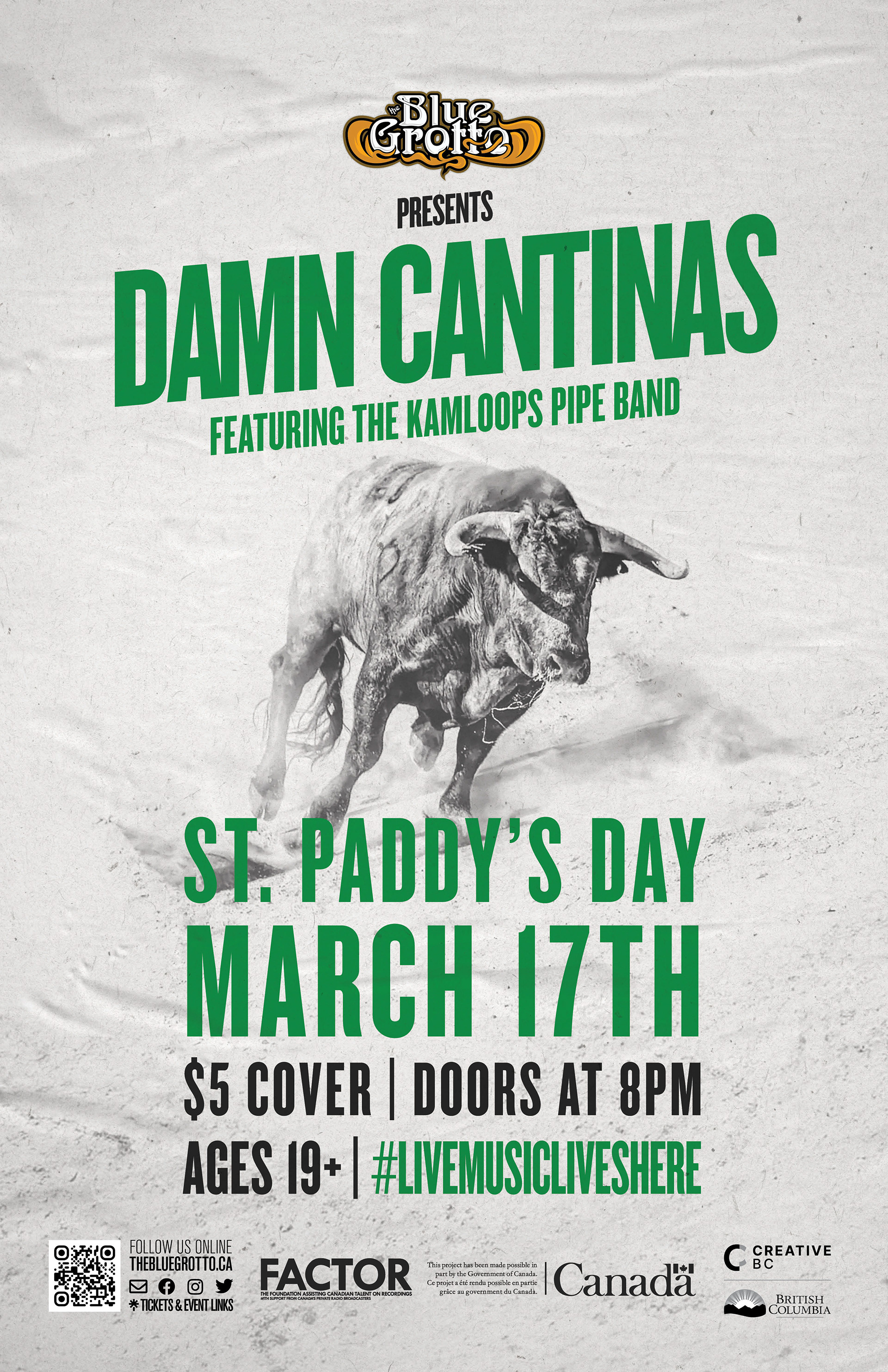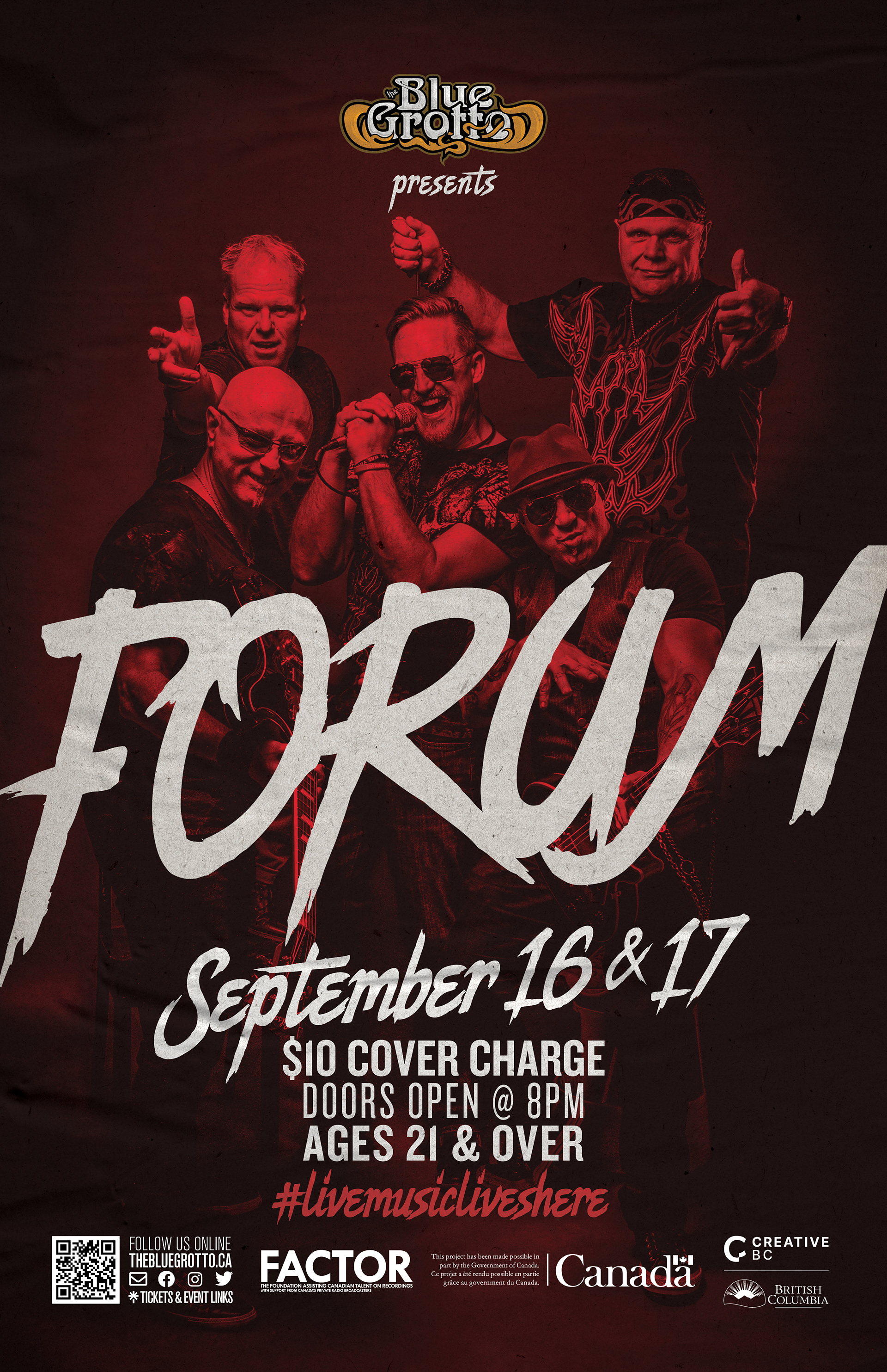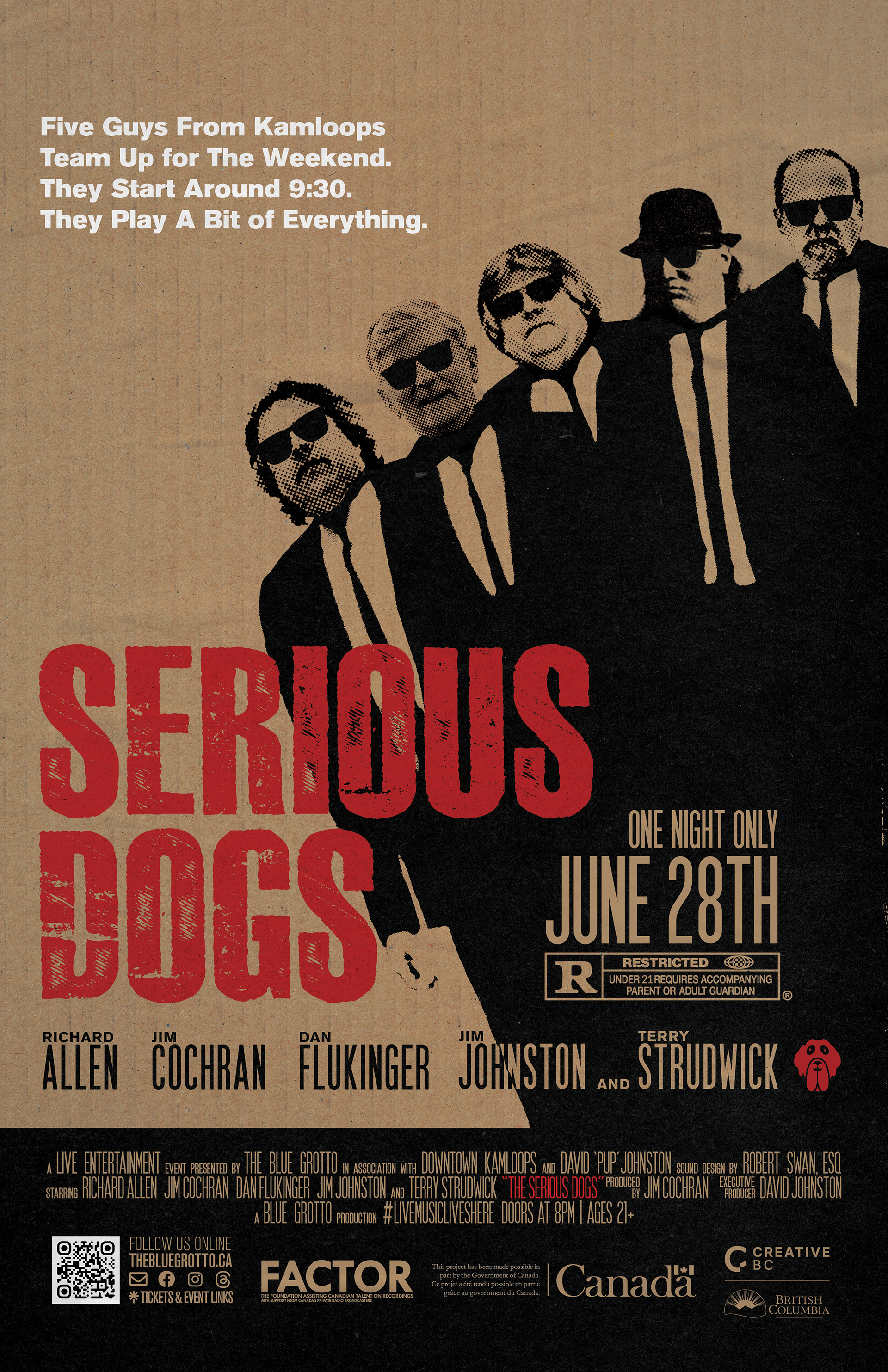 Various poster designs for Kamloops' home of live music, The Blue Grotto.